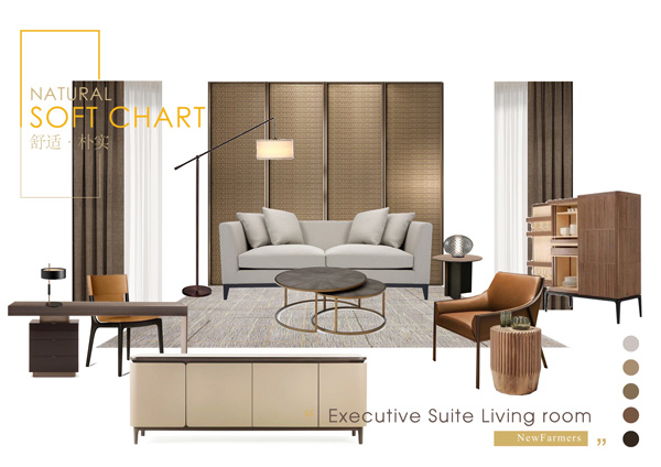 色彩和諧、選材適當。色彩是在酒店空間環(huán)境中最為敏感的視覺因素,因此根據整體構思確定空間環(huán)境的色彩主調是至關重要的問題。在酒店空間設計中,色調的形成,一方面是空間界面選材的固有色有直接的關系,另一方面與室內的家具、陳設、光照等也有密切的關系,因而在確定色調時,一定與材料的色澤和家具陳設的色彩統一考慮,才能達到預期的效果。